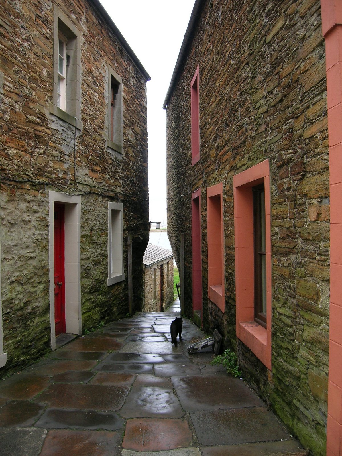 Anyone who has visited Stromness will know what a quirky wee town it is. The narrow, flagged main street is so tricky to negotiate–what with pedestrians, parked cars and vehicles coming the opposite direction–that even some Orcadians refuse to drive along it. Imagine a single-track rural road with sheer banks of masonry and you’ll come quite close. The rest of the town stretches the short way down to the waterfront or up the hill, much of it in narrow closes reminiscent of Edinburgh’s Old Town.