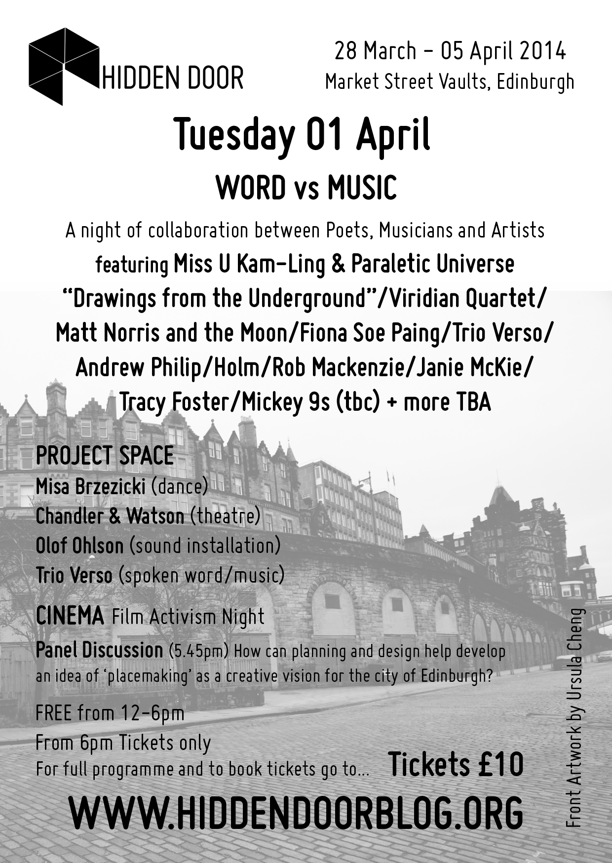 I’m just back through the door from a practice with Stewart Veitch and Frank Glynn — a.k.a. Holm — for Tuesday’s Hidden Door performance. It’s the first time we have tried out what we are planning to do for the gig and we are all really excited about how well the music and poetry are working together — in fine balance and each at the service of the other. We can’t wait to present this new venture on Tuesday. Catch us at around 8:15 PM. Book your tickets here!
