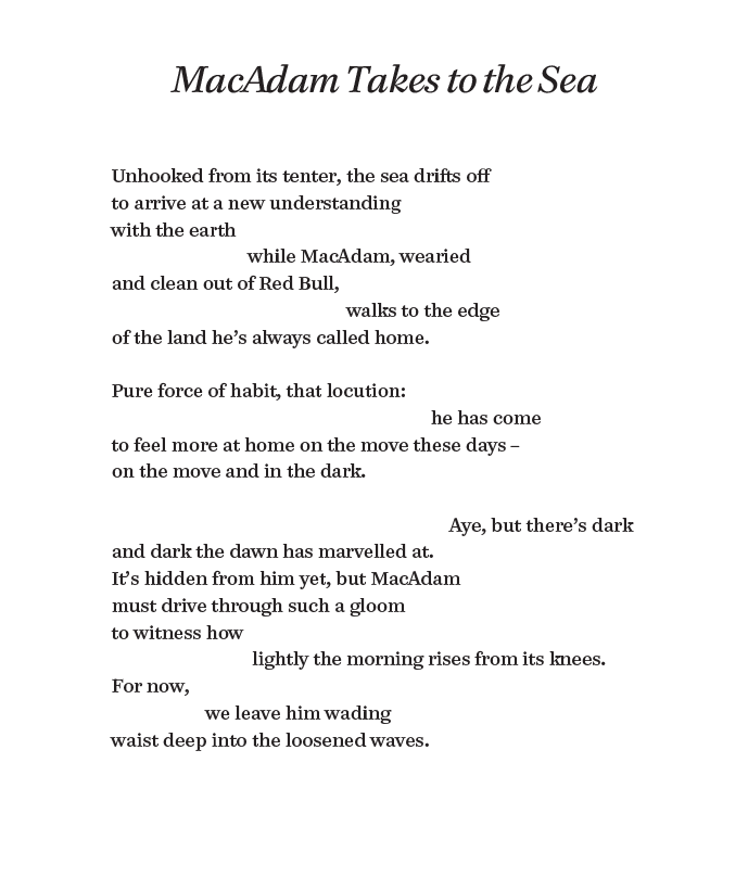 This poem was made into a film by Alastair Cook. The film was commissioned for the second Hidden Door festival in Edinburgh and premiered in October 2010. It was also screened at StAnza, Scotland’s international poetry festival, in March 2011. Watch it here: Filmpoem 8.